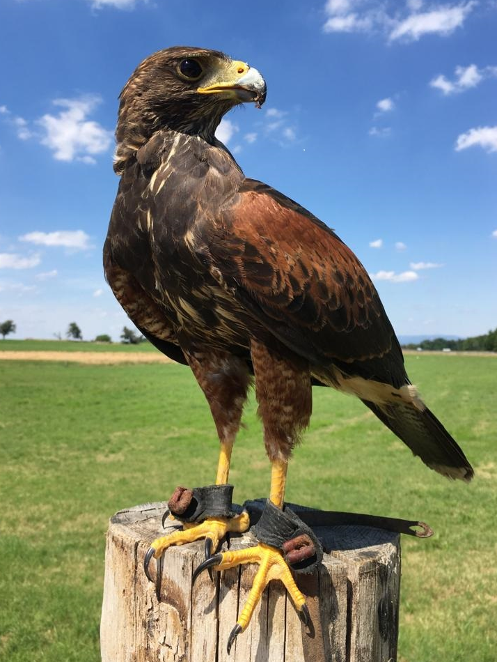 Er ist im 2021 geboren und da er eben keinen Jagdtrieb zeigte und auch sonst ein eher etwas schwierig zu zähmender Kerl ist (da sind Vögel halt auch individuell), hat ihn der Falkner mir zum Training übergeben. Ich arbeitete ja schon einige Jahren mit ihm zusammen und half beim Training diverser Vögel (Falken, Harrise, Habicht, Eulen)